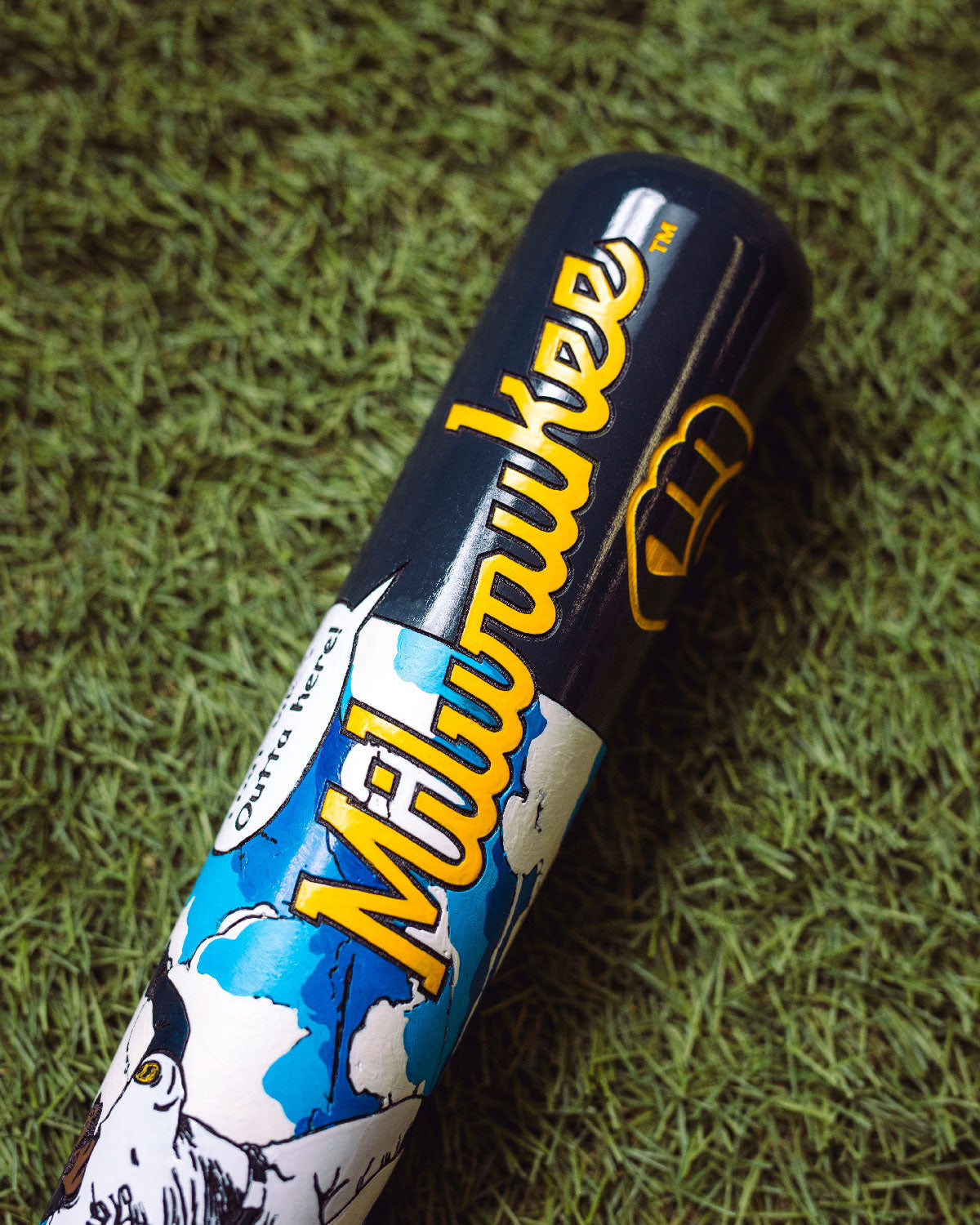 Every Pillbox bat is crafted at our shop in Winona, Minnesota. Each bat in 'The Mural Series' is crafted of high-quality maple, 34" long, laser engraved, and has the signature Pillbox logo pin inlaid into the knob. Be sure to add some bat hangers to your cart to properly showcase your new addition!